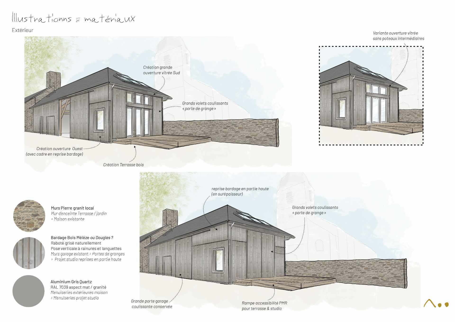 > Etude de projet : Etat actuel, Esquisse, Avant-Projet Sommaire + Conseil matériaux ;