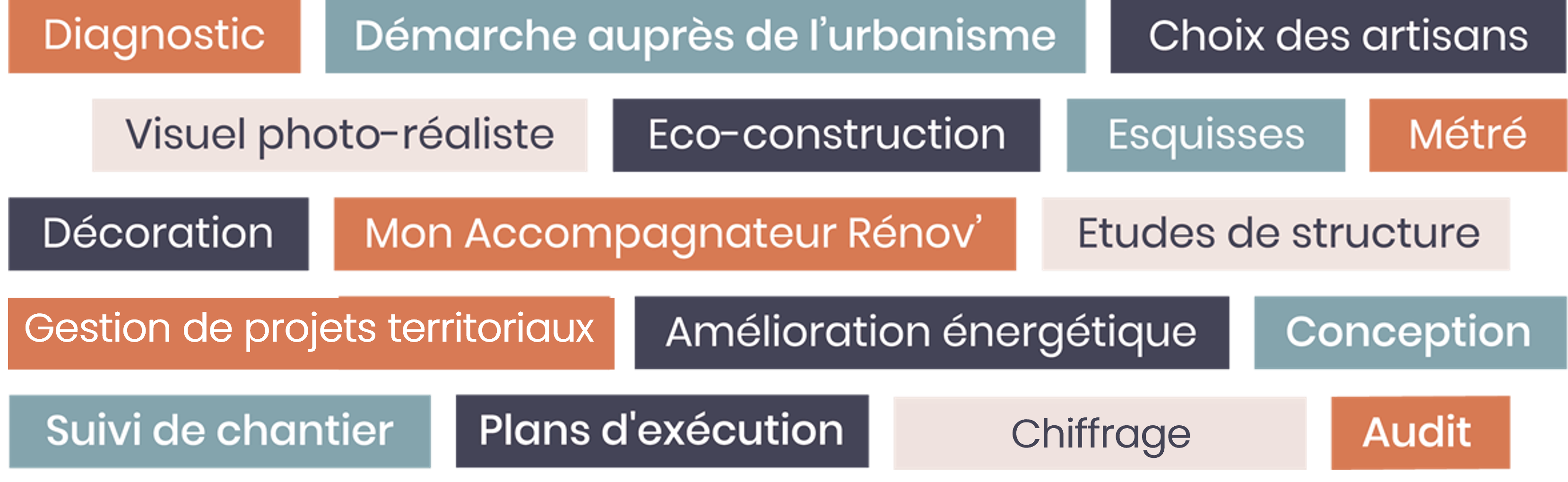 - la réalisation/ ou la rénovation de bâtiments, depuis leur conception jusqu’au suivi de la construction